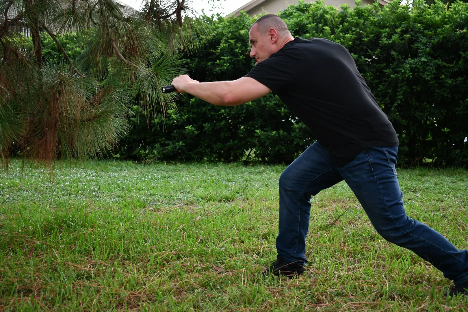 Our techniques are based on using a one-handed grip to deliver chopping and thrusting blows. This training is especially useful in situations where other weapons aren't an option, making it a powerful skill for personal protection. As Mark Twain said, "A good impromptu is always prepared in advance," which is why carrying a sturdy pen can be a wise idea.